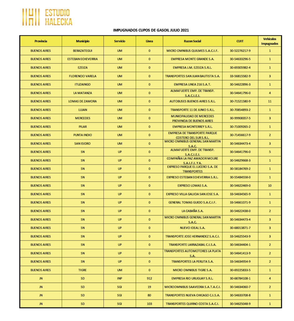 “Establécese que la falta de pago a su vencimiento de la Tasa Nacional de Fiscalización del Transporte, incluidos los recargos establecidos por el artículo 7° de la Ley N° 17.233; la falta de pago de las obligaciones tributarias y previsionales exigidas por la ADMINISTRACIÓN FEDERAL DE INGRESOS PÚBLICOS (AFIP); y la falta de pago de multas impuestas por la COMISIÓN NACIONAL DE REGULACIÓN DEL TRANSPORTE (CNRT), cuyos vencimientos hayan operado desde la entrada en vigencia del Decreto de Necesidad y Urgencia N° 297 de fecha 19 de marzo de 2020 y hasta el día 31 de julio de 2021, no serán óbice para el inicio y/o la continuación de los trámites ya existentes en el ámbito del MINISTERIO DE TRANSPORTE ni para la percepción de compensaciones tarifarias y/o el cupo de gasoil a precio diferencial, liquidados por el mismo.”